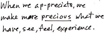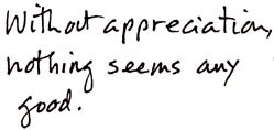 wqhat we have, see, feel, experience. without appreciation, nothing