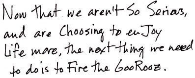 now that we aren't so serious, and are choosing to enjoy life more, the next thing we need to do is to fire the goo-rooz. no more bowing to others' knowledge and rules!