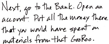next, go to the bank. open an account. put all the money ou would have spent on materials from that GooRoo. Spend that money on things that make your heart sing!