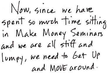 now, since we have spent so much time sitting in Make Money seminars and we are all stiff and lumpy, we need to get up and move around. Go on! try it! it might hurt a bit at first, but gradually you will be able to shake 'em up!